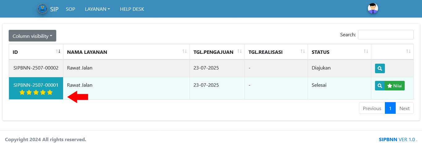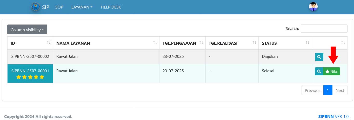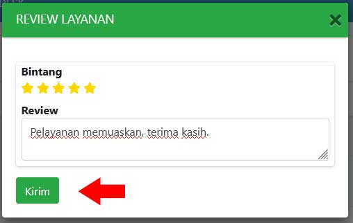 - Klik pada bintang untuk memberikan penilaian, isikan komentar dan klik tombol kirim.