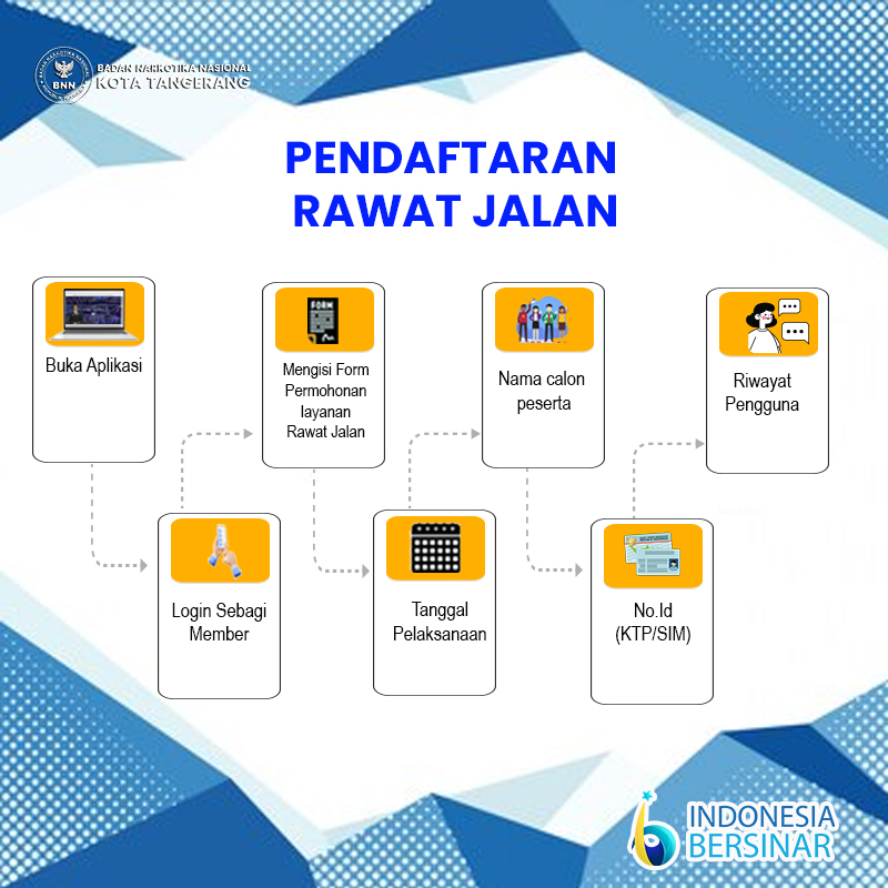 Pada layanan Rawat Jalan, member dapat mengusulkan Rehabilitasi Rawat Jalan untuk keluarga, kerabat, teman bahkan dirinya sendiri ke BNN Kota Tangerang melalui aplikasi SIPBNN. Berikut adalah Langkah-langkah untuk mengajukan rawat jalan pada aplikasi SIPBNN, antara lain :