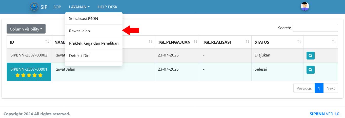 d. Pengajuan Rawat Jalan melalui aplikasi SIPBNN telah selesai, selanjutnya menunggu konfirmasi dari admin aplikasi SIPBNN.